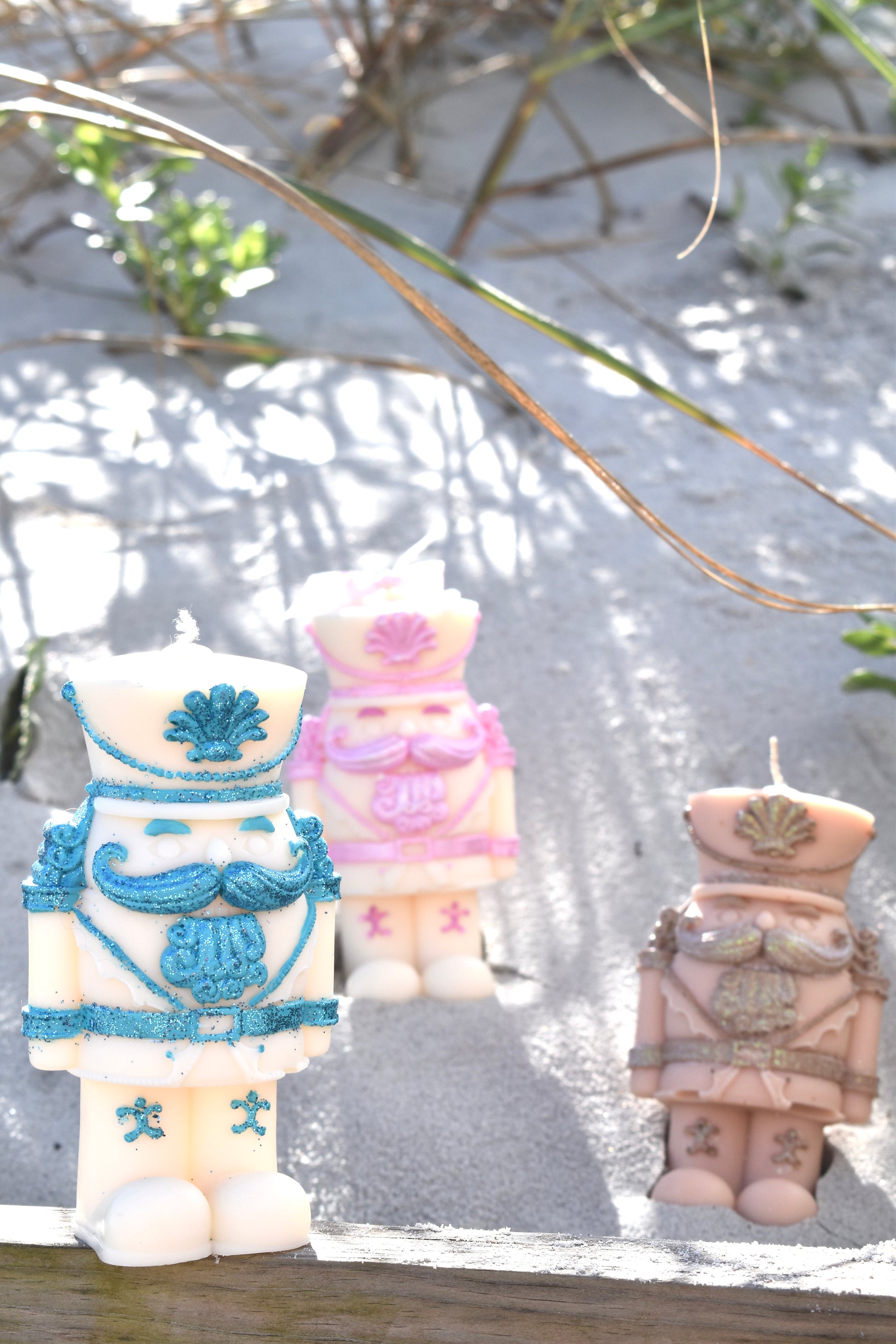 Bring a touch of the tropics to your holiday season with these Beachy Nutcracker Candles, hand-poured with 100% natural soy wax and hand-painted.